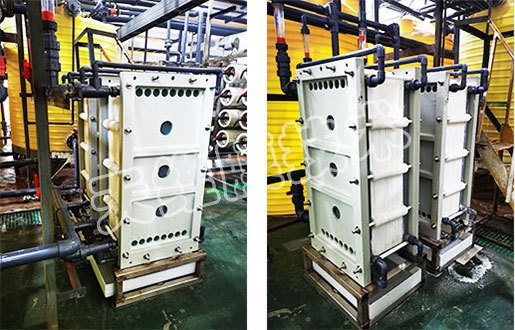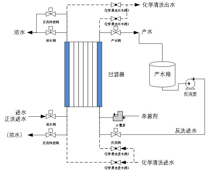 用于膜法水处理设备的前端预处理,为压力驱动式过滤,可有效截留悬浮物、胶体、大分子有机物等杂质,同时也可以作为机械过滤器的二级过滤,充分保障过滤器出水的水质。根据进水水质的情况,平板过滤器可以选择错流过滤和死端过滤两种方式。产水回收率一般可以达到80%~95%,进水压力一般不超过2.0bar。